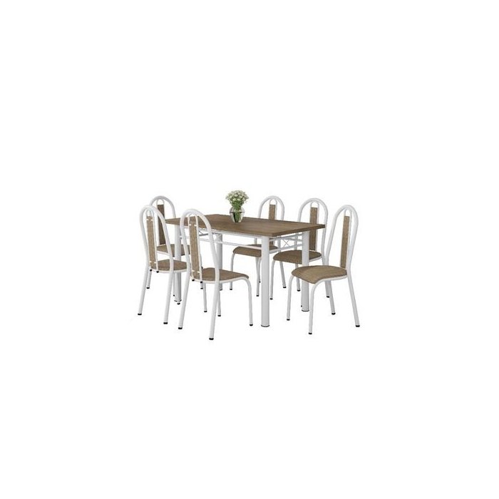 Conjunto De Mesa Tubular Tubular Sara de 136 cm x 80 cm Branco Com 6 Cadeiras 058 Artefamol