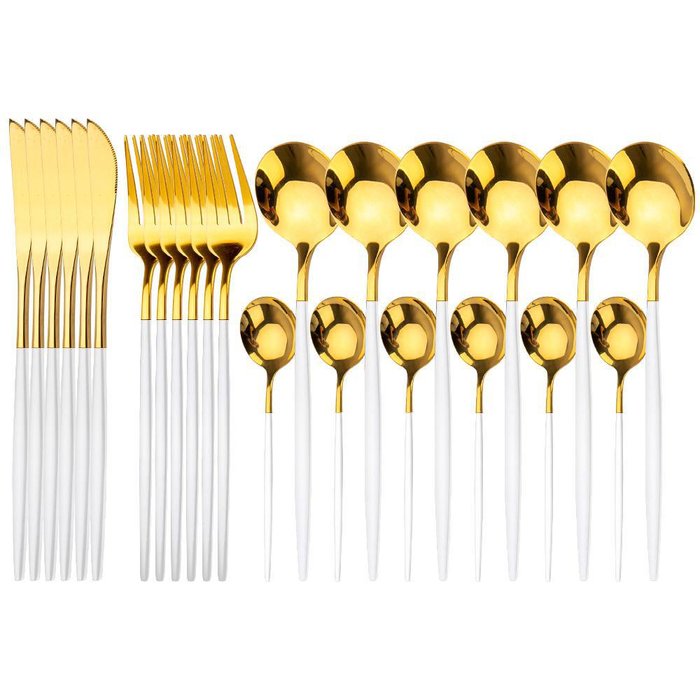 Conteúdo da embalagem: Faqueiro com 24 peças branco de aço inoxidável.