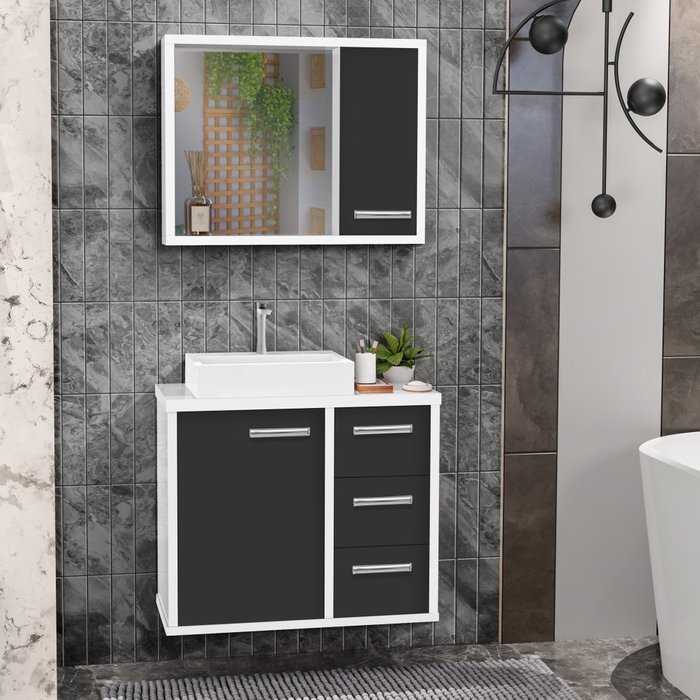 Conjunto Gabinete Banheiro com Cuba e Espelho Turin 60 Brpr
