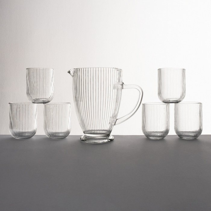 Wincy Prisma: Conjunto com Jarra de 1,2L e 6 Copos de 260ml em Vidro Canelado