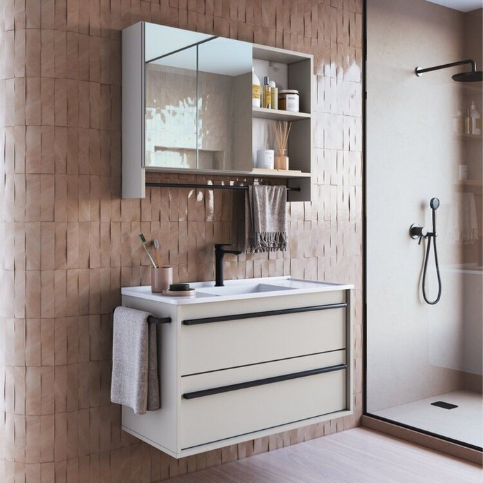 Conjunto para Banheiro Gabinete Suspenso 80cm com Toalheiro Lavatorio e Espelheira Cj8030.20 Arenas