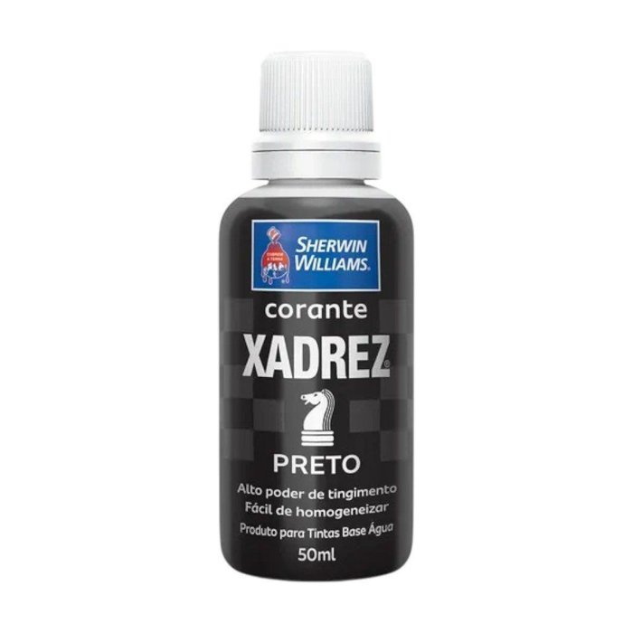 /nInformações Técnicas/nTipo: Corante líquido concentrado/nBase: Água/nMarca: Sherwin-Williams/nLinha: Xadrez/nCompatibilidade: