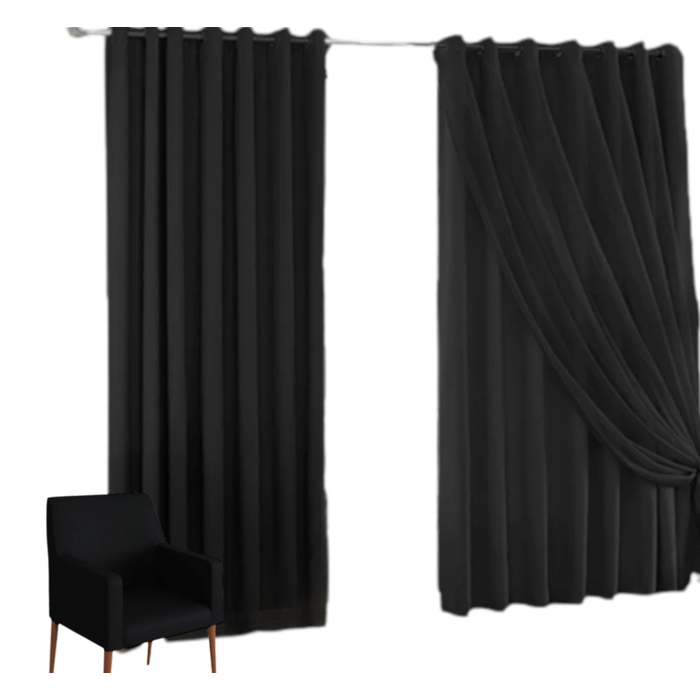 Cortina Blackout com voil 7,00x2,30 Para Varão Duplo:Preto