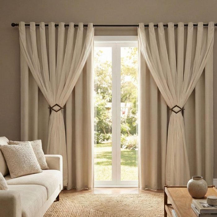 Se você busca bloquear a luz sem perder a sofisticação, esta é a cortina ideal. Diferente dos modelos de plástico (PVC), nossa cortina é feita em Tecido Blackout Premium, garantindo um caimento impecável e toque macio, acompanhada de um Voil delicado que traz leveza à decoração.