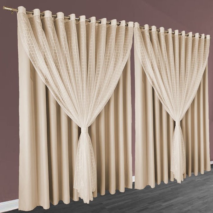 Cortina de blackout em tecido para Corta Luz 6,00 metros x 2,80 Com Voil Voal liso Para Sala Quarto