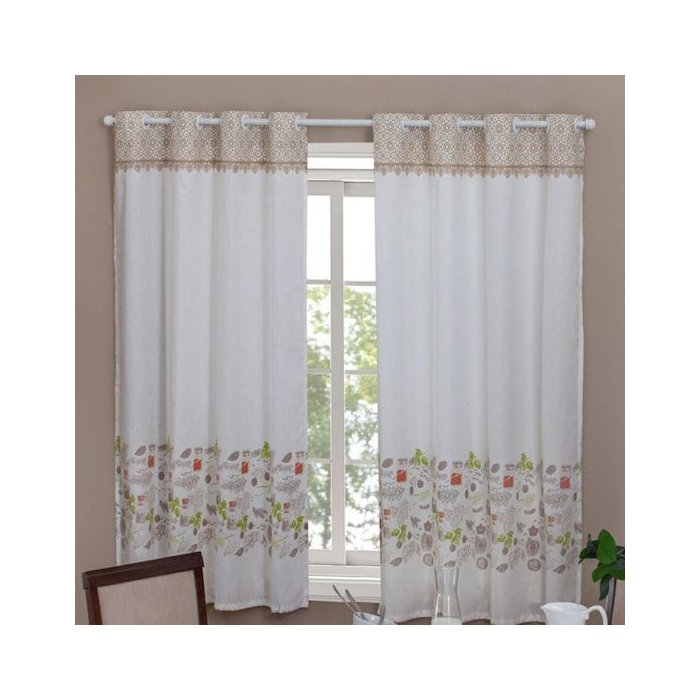 Cortina de Cozinha Martina Casa D'oro. Medidas: 2,00m de largura X 1,40m de altura. Composição: 100% Poliéster. Cortina com Ilhóses; Tecido Canelado, fácil de passar. Lavar com temperatura máxima de 30 graus; não alvejar; possível secar em Tambor com temperatura baixa; passar com temperatura máxima de 110 graus, não usar vapor; não limpar a seco; limpeza a úmido, processo normal.