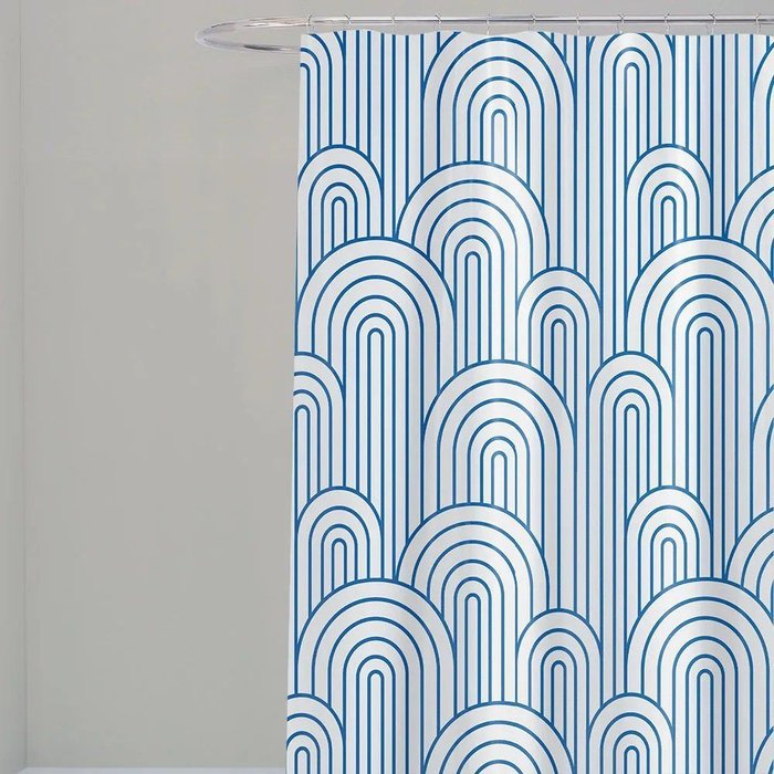 Cortina para Box Banheiro Antimofo Poliéster 198x180cm - Ondas Azuis