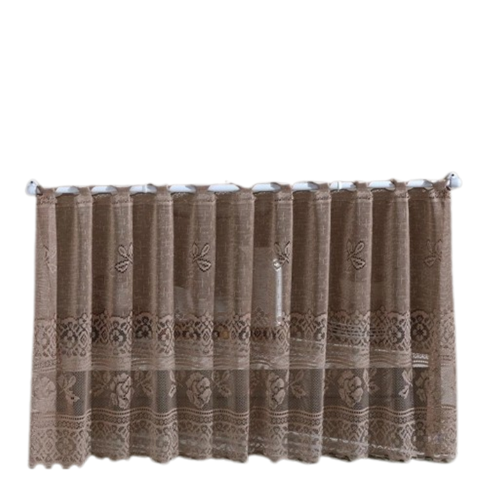 Cortina de Renda indicado para Janela ou Pia, com 2,00m de largura e 80cm de altura, ideal para varão com até 1,5 m de comprimento. A Linha Renda Valência é leve, versátil, com lindos detalhes. Desenvolvido com uma técnica exclusiva de entrelaçamento dos fios, dando um toque charmoso e romântico ao ambiente.