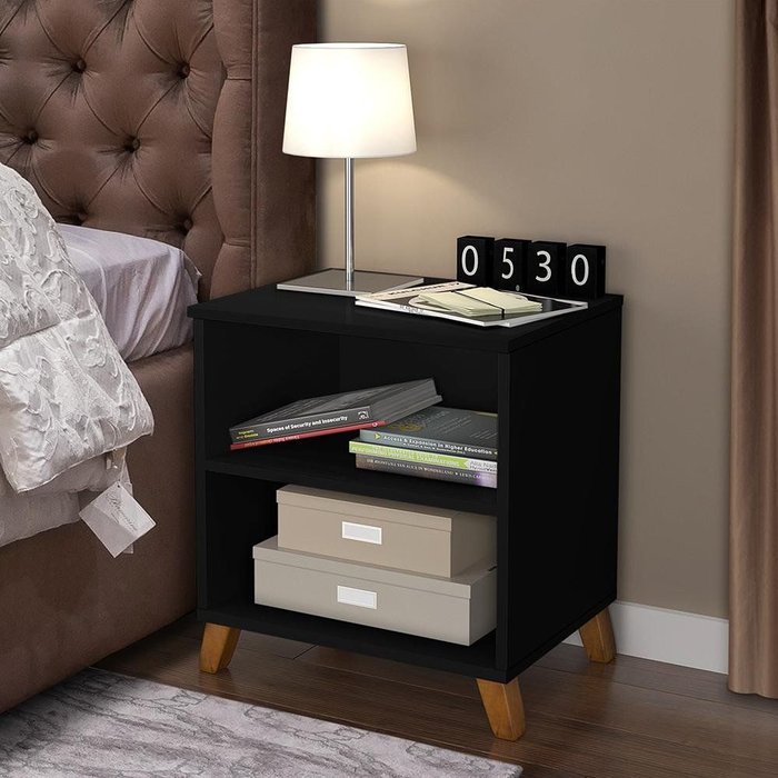 Criado de Cabeceira Retro 2 Nichos Preto Estonia Preto