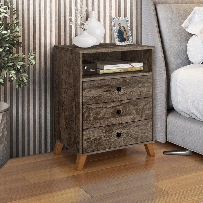 Criado de Cabeceira Retro 3 Gavetas e 1 Nicho Austria Castanho