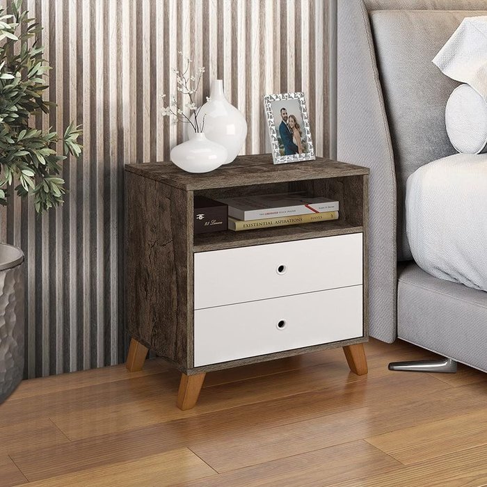 Criado Mesa de Cabeceira 2 Gavetas 1 Nicho Castani com Branco Castanho com Branco