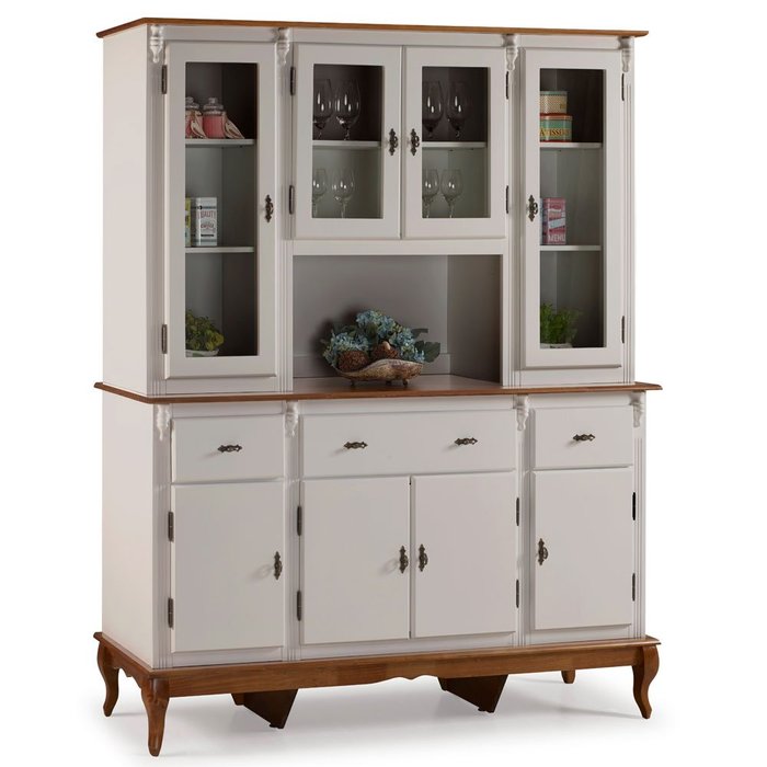 Cristaleira Arca Oratório 8 Portas 3 Gavetas e Pés Luiz XV 60634 Linz Móveis - Off White/Imbuia
