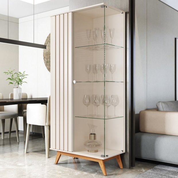 Cristaleira Moderna com Estrutura Lateral e Portas Ripadas de 24mm.