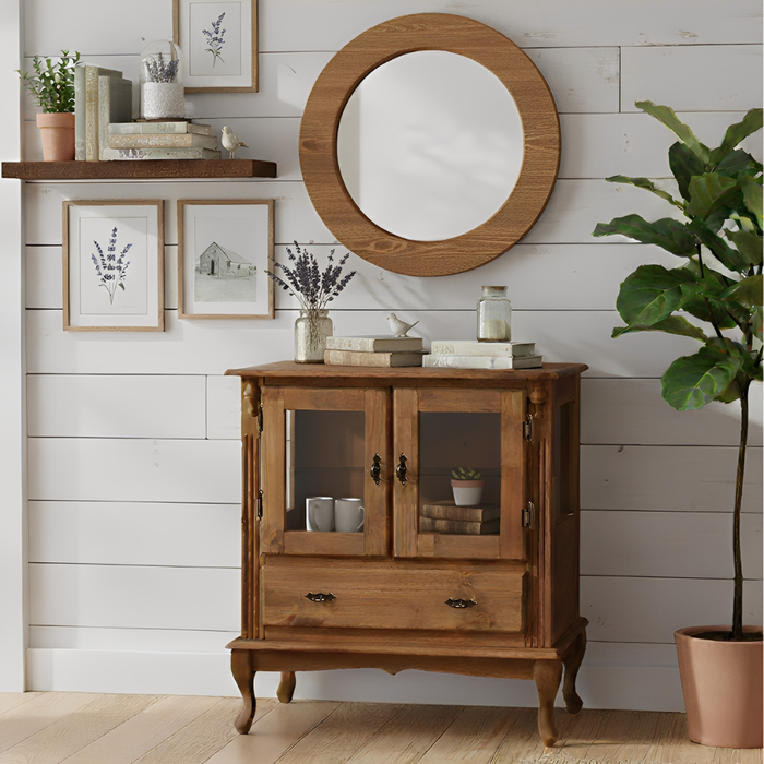 Cristaleira de Madeira 2 Portas 1 Gaveta Vidros na Lateral Pés Luiz Xv
