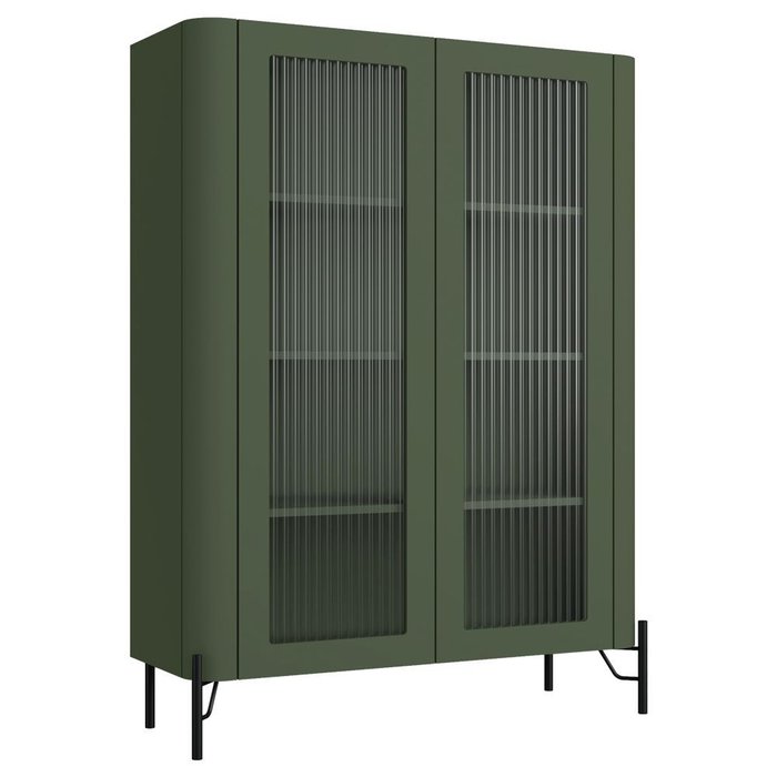 Cristaleira Sala de Jantar 2 Portas Vidro Pés Industrial Preto Naim I03 Musgo - Lyam Decor
