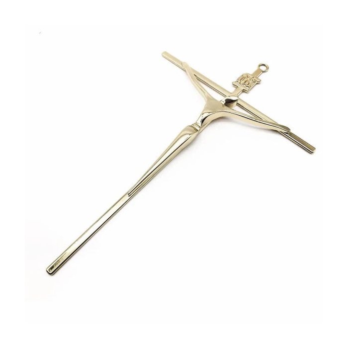 Crucifixo de Metal Dourado Parede Grande 19 cm