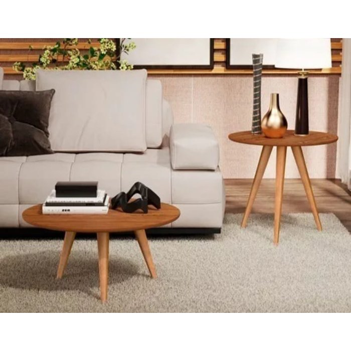 Duas Mesinhas Centro e Apoio e Redondas Pés Palito Freijó