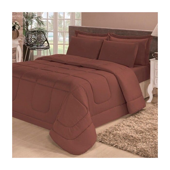 Edredom Quality Casa Dona Dupla Face Casal Queen 240x220cm Marrom Marrom