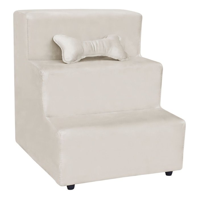 Escada Escadinha para Pet 3 Degraus com Osso Cor Bege Veludo Liberty Móveis Creme