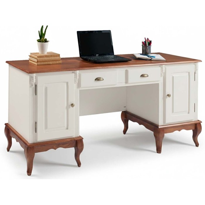 Escrivaninha 2 Portas 2 Gavetas Pés Luis Xv Linz Móveis 80 X 176 X 50 Cm (a X L X P) Offwhite - Imbuia Glazer