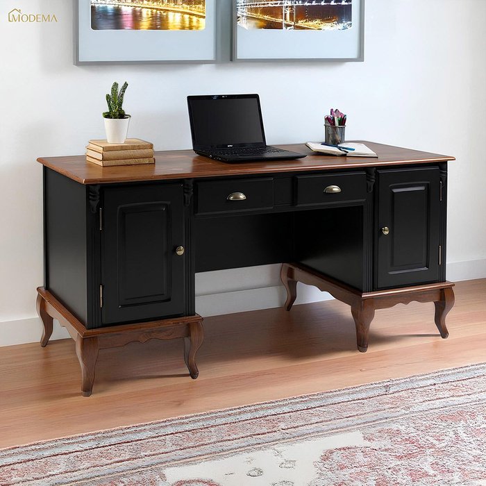 A Escrivaninha Hannover Linz Móveis é perfeita para o seu escritório, home office ou sala de atendimento. Com seu amplo tampo em madeira maciça, duas gavetas centrais com corrediças telescópicas, você terá espaço de sobra para armazenar papéis, canetas e outros materiais de escritório. Além disso, possui duas portas com prateleira interna oferecendo ainda mais espaço para guardar itens e organizá-los. Os pés estilo Luiz XV em madeira maciça e puxadores metálicos dão um toque clássico, elegante e requintado ao móvel. Produzida em Madeira Maciça para tons amadeirados em verniz e MDF nos tons coloridos com acabamento laca, materiais de alta qualidade e durabilidade, garantindo que você possa aproveitar dela por muitos anos. A escrivaninha com gavetas é uma excelente escolha para quem procura design e detalhes marcantes e organização dos seus pertences.