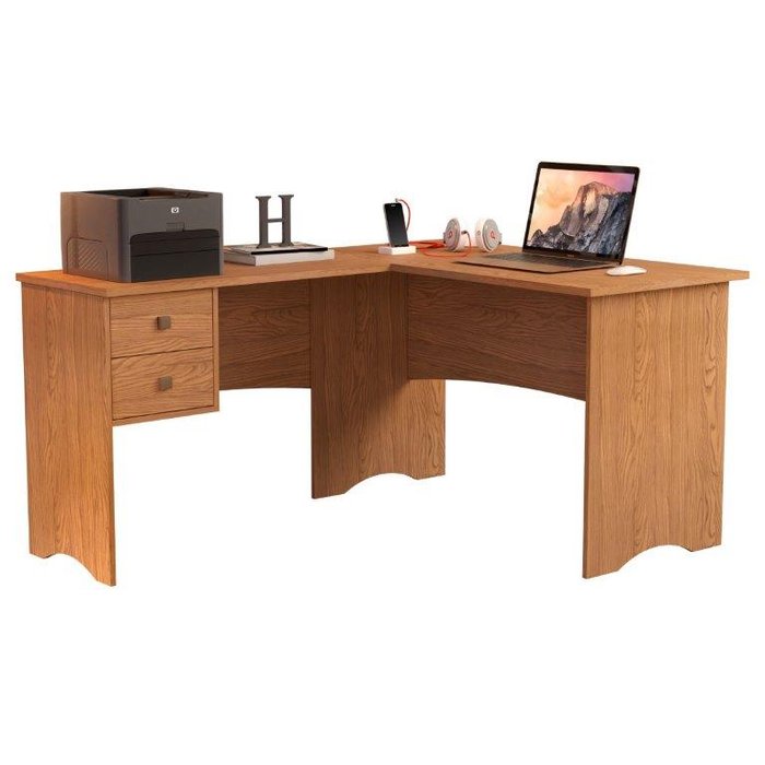 ESCRIVANINHA MESA DE COMPUTADOR EM L DE CANTO PARISE 2 GAVETAS TAMPO 18MM COR NATURE RÚSTICO
