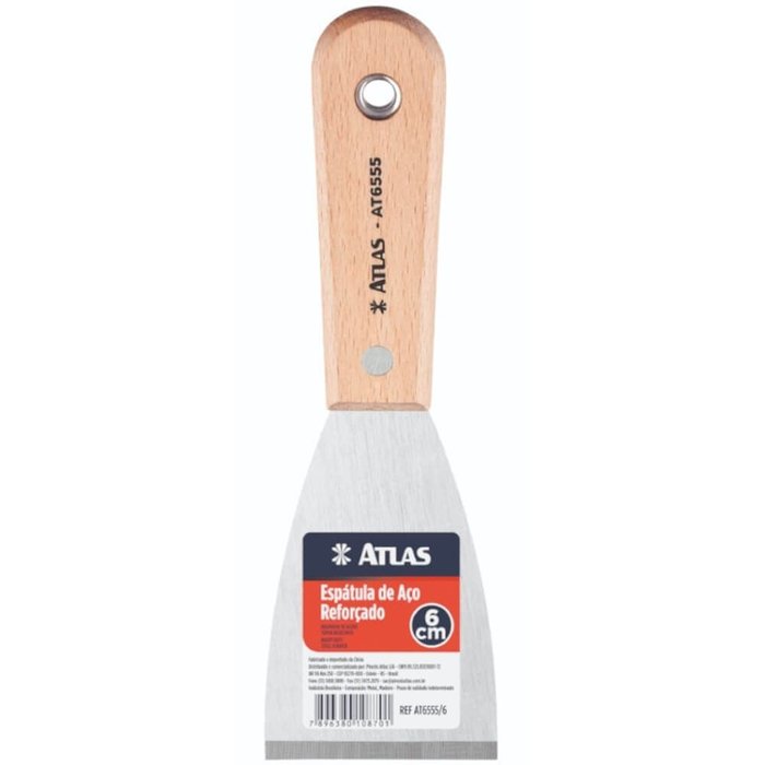 Espátula de Aço Reforçado com Cabo de Madeira 60mm - At6555/6 - Pincéis Atlas Espátula de Aço Reforç