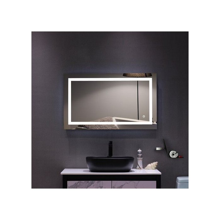 Espelho 4mm Retangular Iluminação Luz Frontal Led 3 Cor Frio Neutro Quente 80x50 Tecla Touch