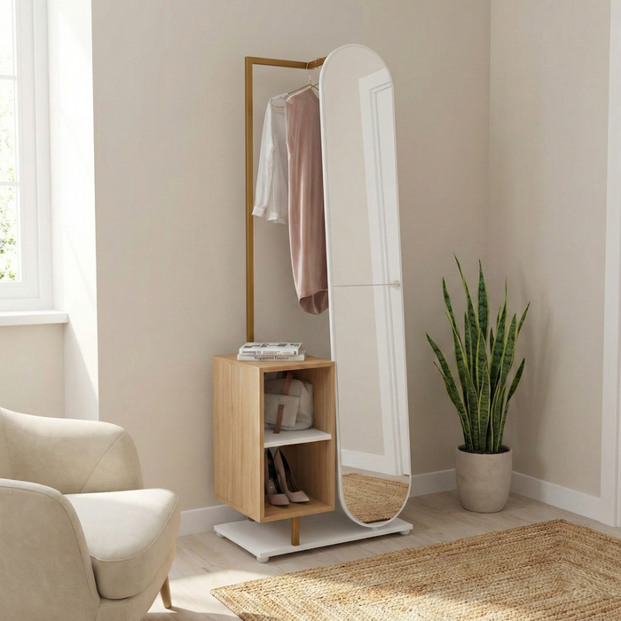 A Arara oferece amplo espaço para suas roupas, facilitando o acesso ao seu guarda-roupa de uso diário, além disso ela é perfeita para espaços menores, se adapta a qualquer ambiente, seja no quarto, no hall de entrada ou no closet.