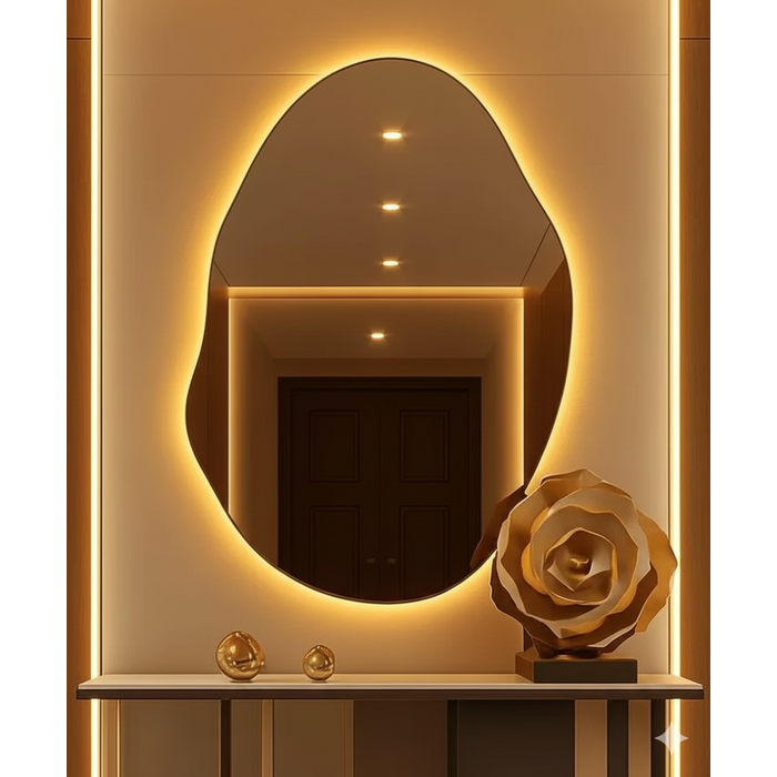 Espelho Decorativo Orgânico com Led Quente de Parede Corpo Inteiro Madri Demoglass Quente - 3000K