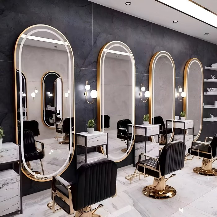 Espelho Grande Corpo Inteiro com Moldura Oval 170x70cm Luxo Bronze com Led Quente/frio