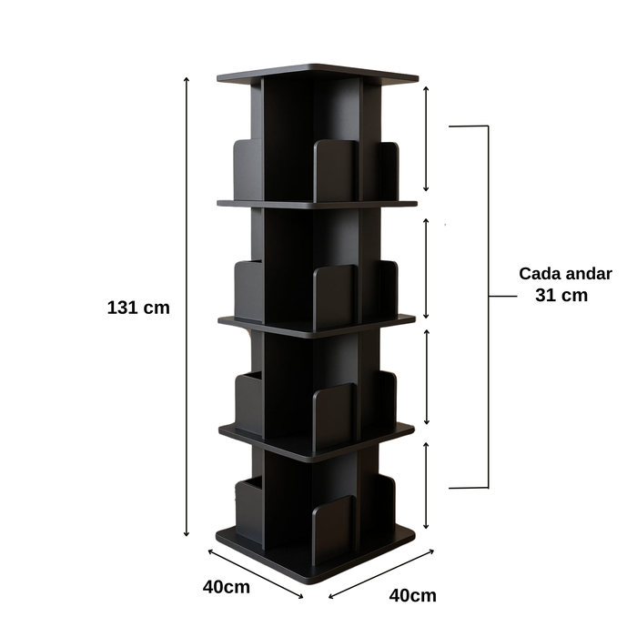 -Estante para Livros Giratória QUADRADA PRETA 4 ANDARES