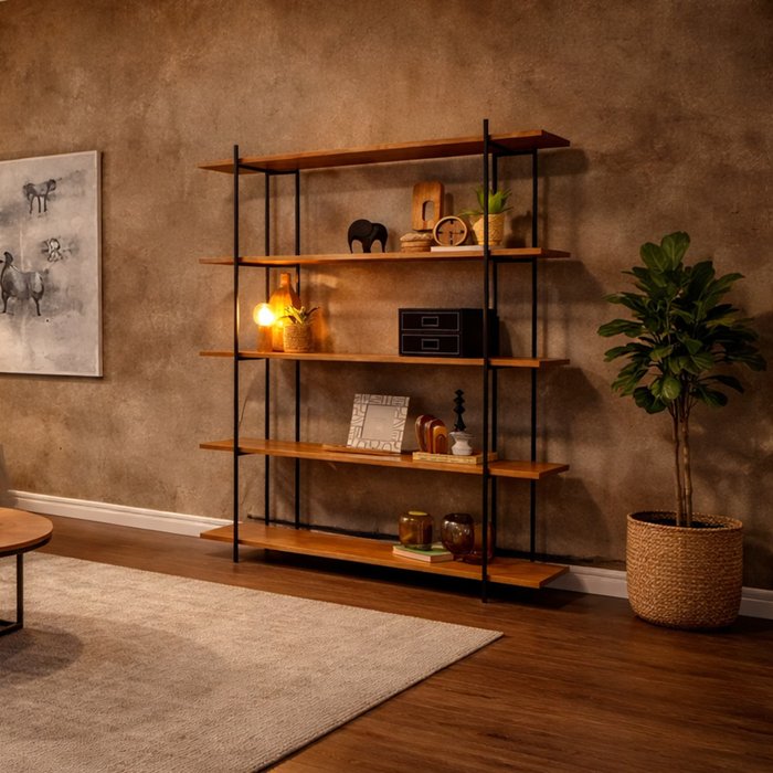 Com 5 prateleiras amplas em madeira natural e acabamento sofisticado, ela oferece espaço ideal para organizar e decorar sua sala, escritório ou quarto.