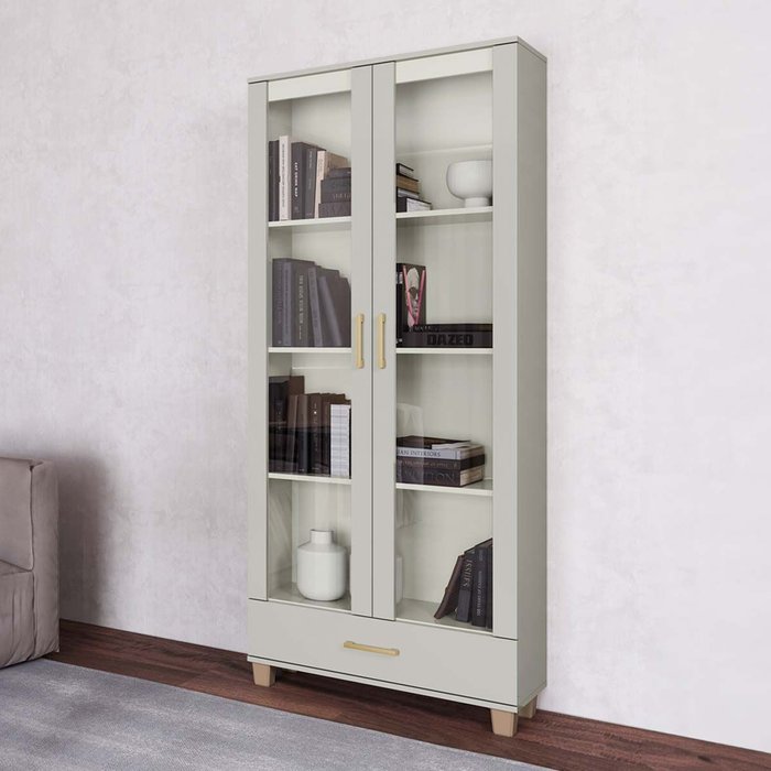 Estante Mdf Portas Vidro e Gaveta Off White/gold C58