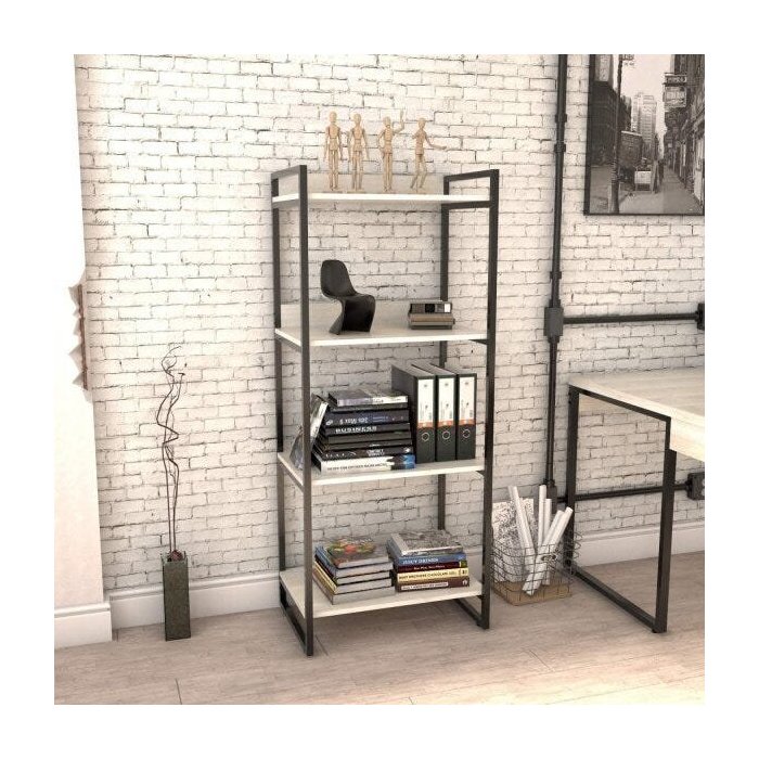 Estante para Livros Industrial 145cmx60cm 4 Prateleiras Kuadra Snow