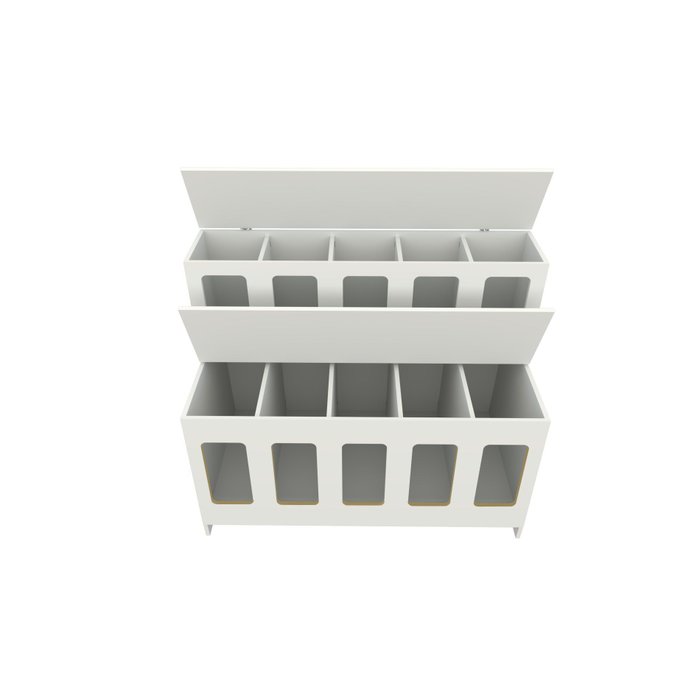 Fabricado em MDF de alta qualidade, produzido com maquinários modernos, garantindo excelente acabamento, resistência e durabilidade. Possui compartimentos individuais para armazenar diferentes tipos e sabores de ração, facilitando o acesso e a visualização dos produtos.
