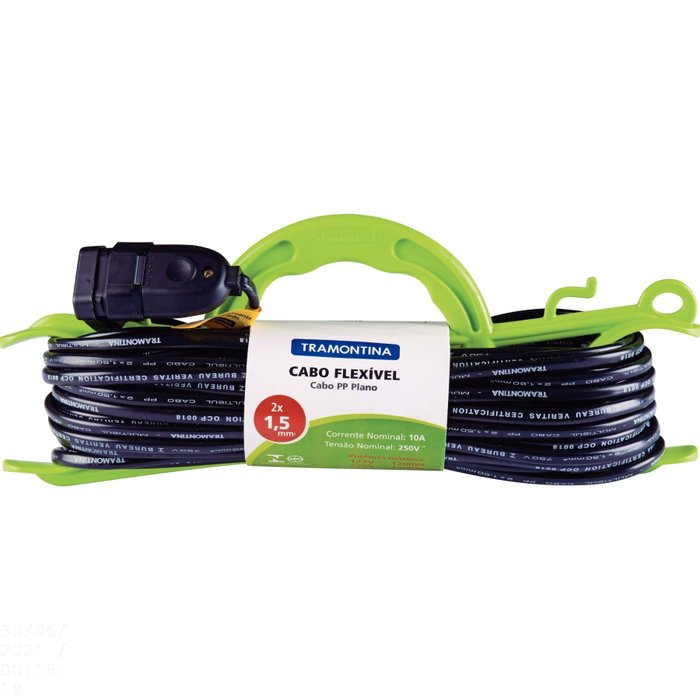 Na hora de cortar a grama ou usar ferramentas elétricas, é muito importante garantir um longo alcance e a segurança na hora de ligá-las. Para isso, conte com a Extensão Cabide 1,5 mm² Tramontina 30 m. Com ela, suas atividades serão realizadas com muito mais praticidade e eficiência, pois ela conta com 30 metros de comprimento e suporta 1200 W em 127 e 2200 W em 220 V de potência. Ela ainda vem acompanhada de um cabide em termoplástico na cor verde, que lhe auxilia na utilização e facilita a hora de enrolá-la e armazená-la. A ajudante perfeita nas suas tarefas domésticas ou no trabalho!