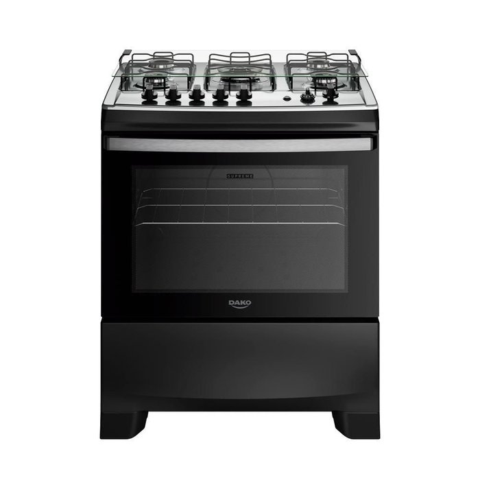 Fogão 5 Bocas Dako Supreme Mesa de Inox e Timer Bivolt - Preto Comprar um fogão Dako é investir no que há de mais moderno e eficiente, com um preço que vai te surpreender!Os tempos mudaram, e o Supreme Inox também, mas ele continua compacto por fora e gigante por dentro. Afinal, até os sucessos merecem ser reinventados.Tenha mais agilidade no preparo das refeições com a praticidade que você merece. Moderno, seguro e eficiente, o fogão Dako Supreme Inox é ideal para todos os estilos de cozinha. A versão 5 bocas possui Tripla Chama que oferece mais agilidade no preparo, enquanto as grades duplas de aço oferecem firmeza e estabilidade para suas panelas.O puxador em alumínio escovado, além de ergonômico, dá um toque de sofisticação no design. A prateleira deslizante facilita na hora de ****colocar e retirar os alimentos com total praticidade. O visor amplo do forno permite acompanhar o preparo sem precisar abrir a porta, e o acabamento Limpa Fácil deixa a limpeza ainda mais rápida e descomplicada. O isolamento térmico de lã de basalto, que garante melhor retenção de calor e menor consumo de gás, tornando o seu forno ainda mais eficiente e econômico.Ter um Fogão Dako Supreme Inox é transformar a cozinha no coração da sua casa. É sentir o prazer de preparar refeições deliciosas com a confiança de estar utilizando um fogão que alia qualidade e inovação.Poucas coisas funcionam tão bem quanto um Fogão Dako Supreme Inox. Você vai perceber: Na hora de comprar, a Dako surpreende!Ficha Técnica: