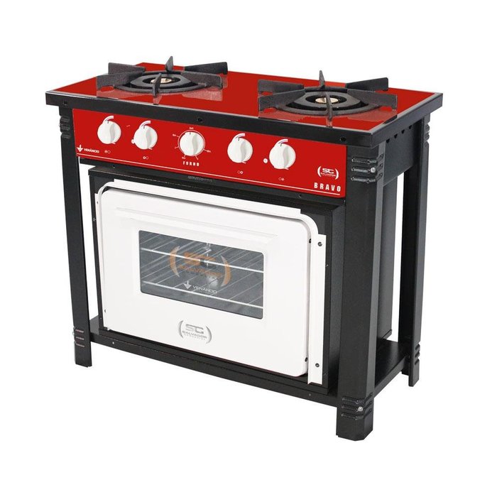 - 1 Fogão Industrial a Gás Bravo 2 Bocas Duplas Espera Forno BR2B Vermelho - Venâncio