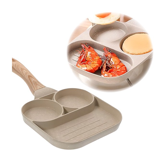Frigideira Antiaderente sem Uso de Óleo 3 Divisórias Panela Omeleteira Cor Bege