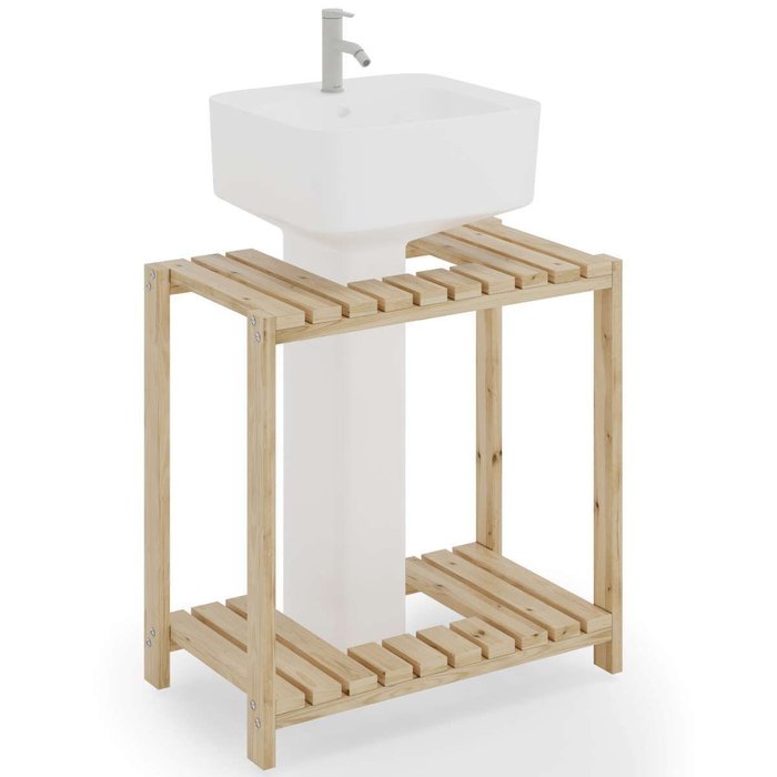 Gabinete Banheiro Estante Pia Coluna 2 Prateleiras Porta Papel Higiênico e Toalhas