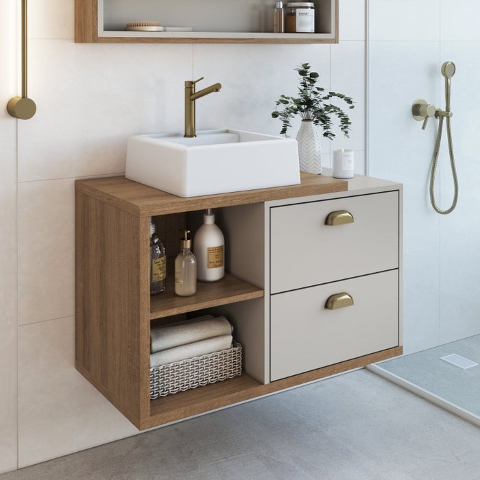 Gabinete de Banheiro Suspenso 80cm Helena com 2 Gavetas e Cuba