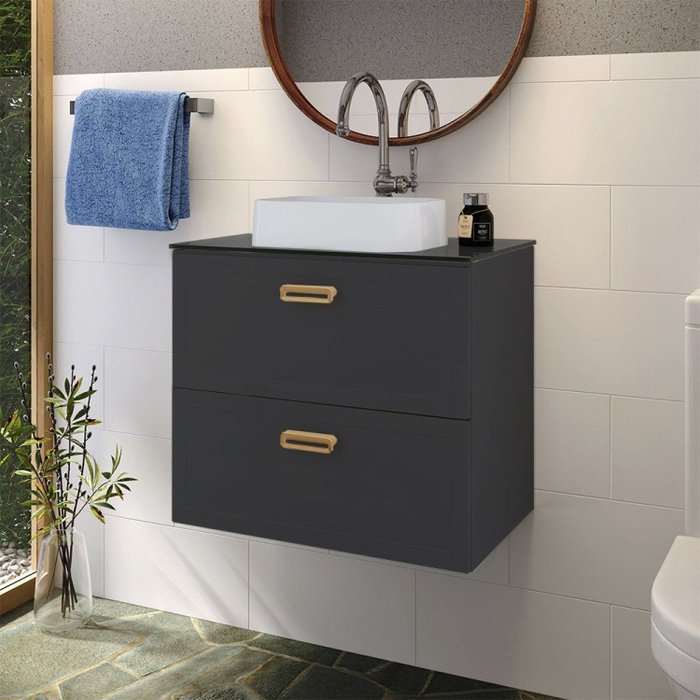 Gabinete Para Banheiro Em Aço Com Tampo Em Vidro Temperado Sem Cuba Odin Preto