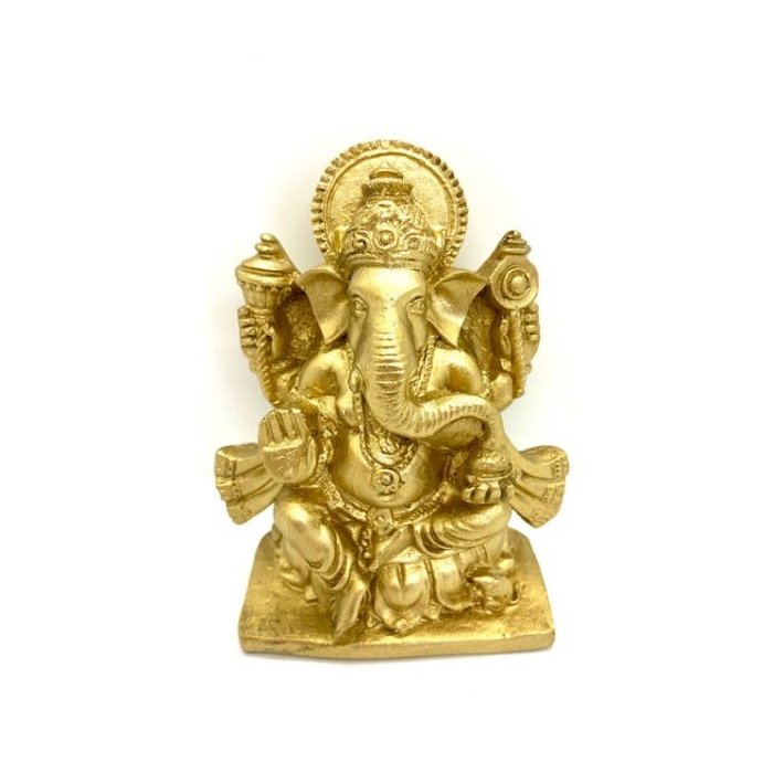 Ganesha Sentado Dourado em Resina 11 cm Dourado
