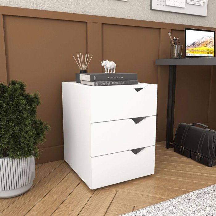 Gaveteiro 3 Gavetas Porto para Escritório Branco Politorno