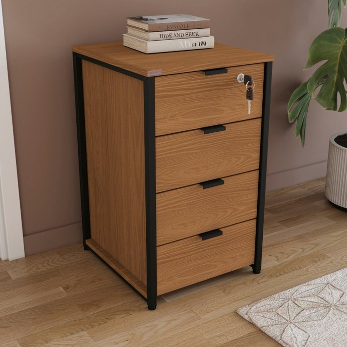 Gaveteiro Estilo Industrial Kappesberg LI045 cor Canela Preto Fosco