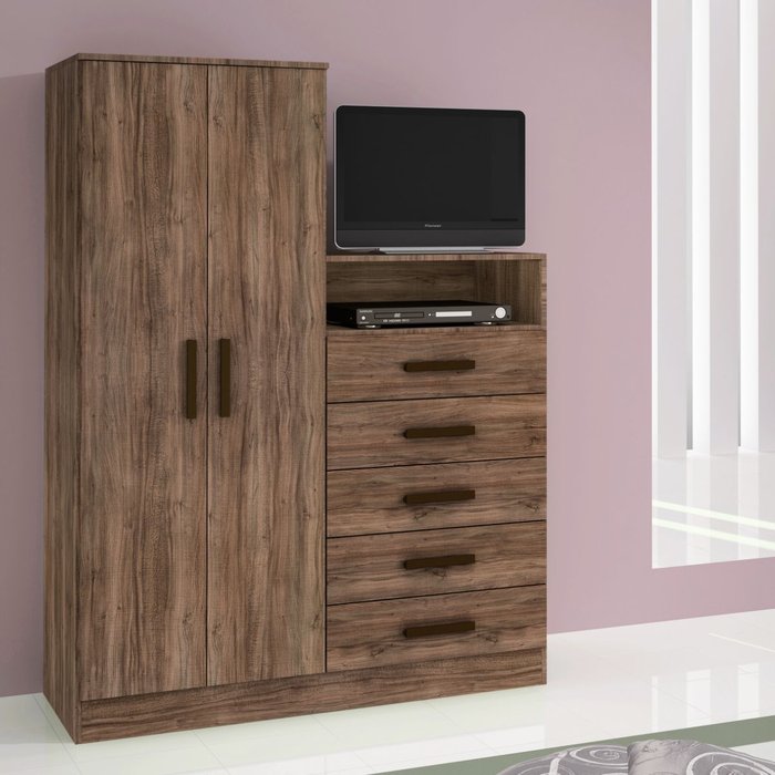 Guarda-Roupa Armário Roupeiro Cômoda Quarto Solteiro Rústico