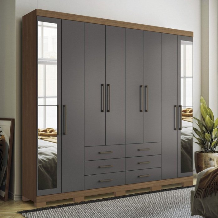 Guarda Roupa Casal 8 Portas 6 Gavetas Master com Espelho e Pés Jatoba/Grafite