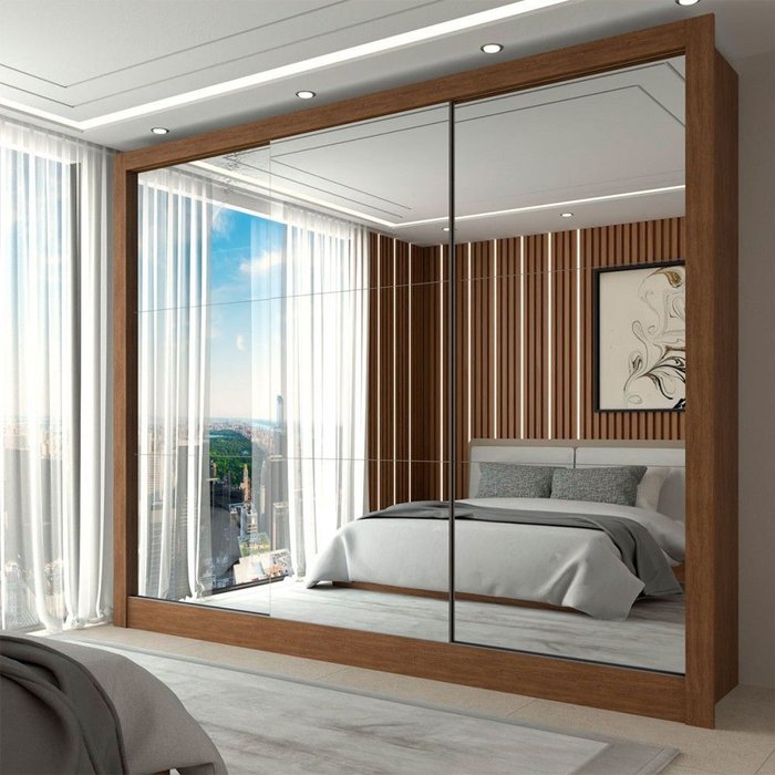 Guarda-roupa Casal Nevada 3 Portas 3 Gavetas com Espelho Cinamomo - Panorama Móveis