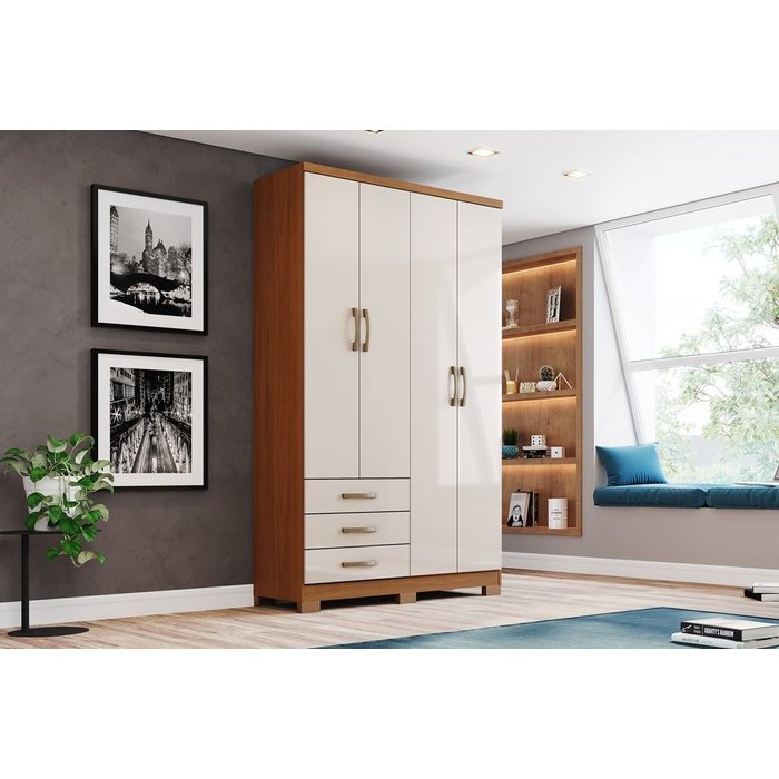 Guarda Roupa de Solteiro 4 Portas e 3 Gavetas Caju Cinamomo Off White - Henn